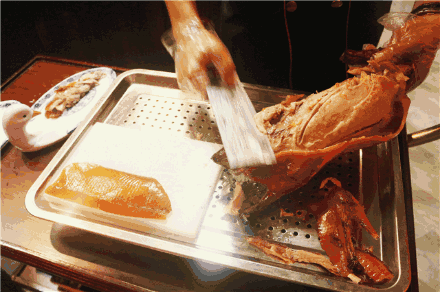 北京涮羊肉种吃法:据说是由大宅门里的太太小姐们兴起的。她们既不吃葱,也不吃蒜,却喜欢将那又酥又脆的鸭皮蘸了细细的白糖来吃。此后,全聚德的跑堂一见到女客来了;便必然跟着涮羊肉,上一小碟白糖。