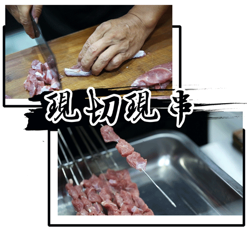 挑选上好的肉,当天现切现串