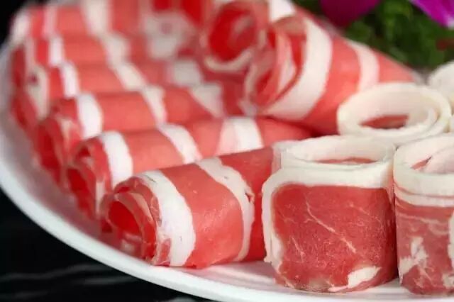 新鲜空运而至的精品羔羊肉,色泽均匀,三份肥七分瘦,厚薄适中。