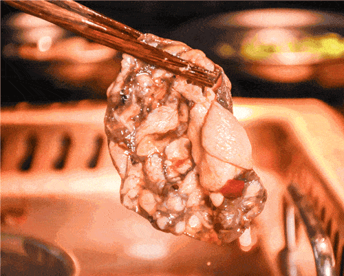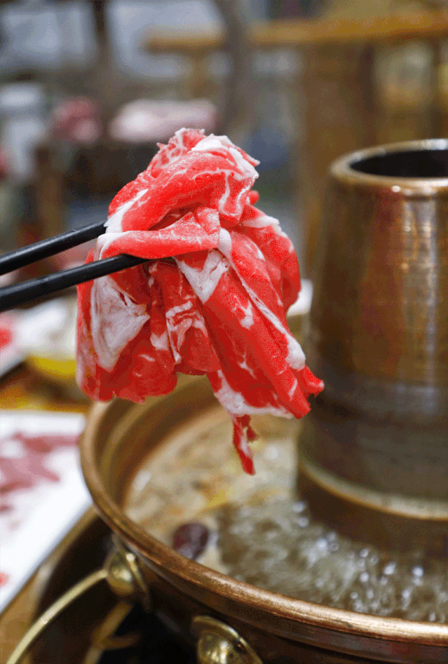 入锅翻腾后的肥牛卷曲变色