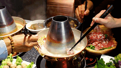 【快餐厅】涮肉用的是老北京铜锅,清汤清水