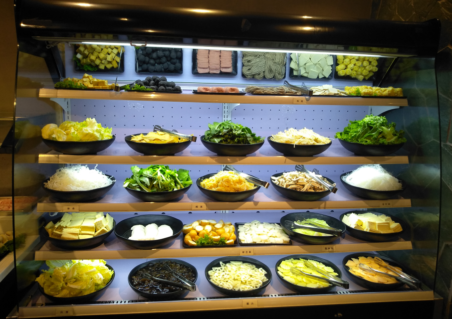 另外一个是蔬菜区,主要提供更多各种蔬菜及豆制品、粉类和午餐肉、鱼豆腐、面筋等半成品等,有27个品种供选择。