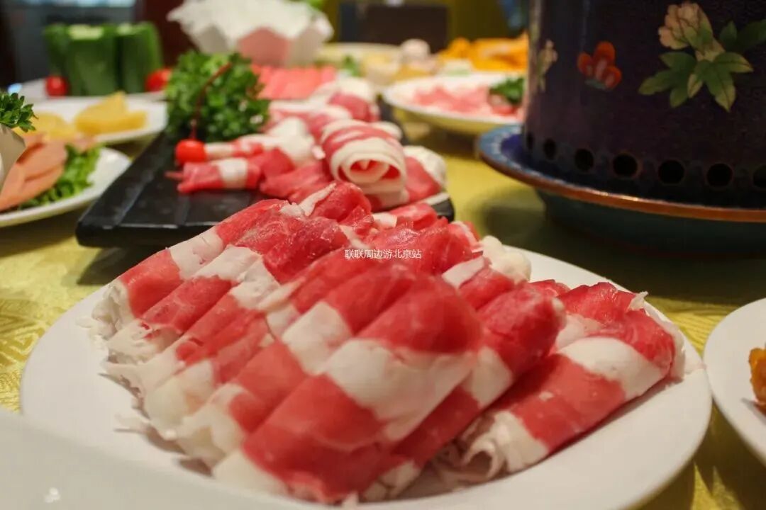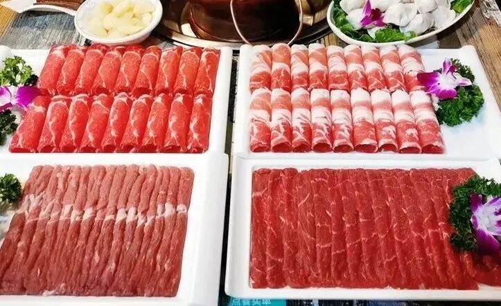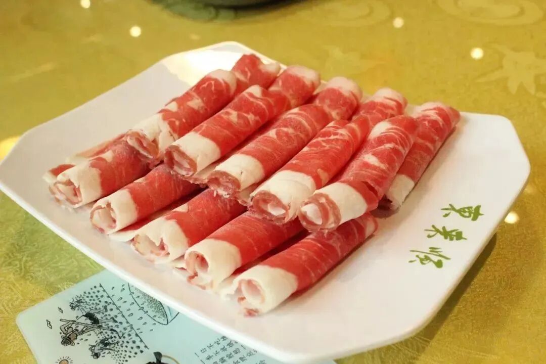 薄如纸片的羊肉整整齐齐的码在盘子里