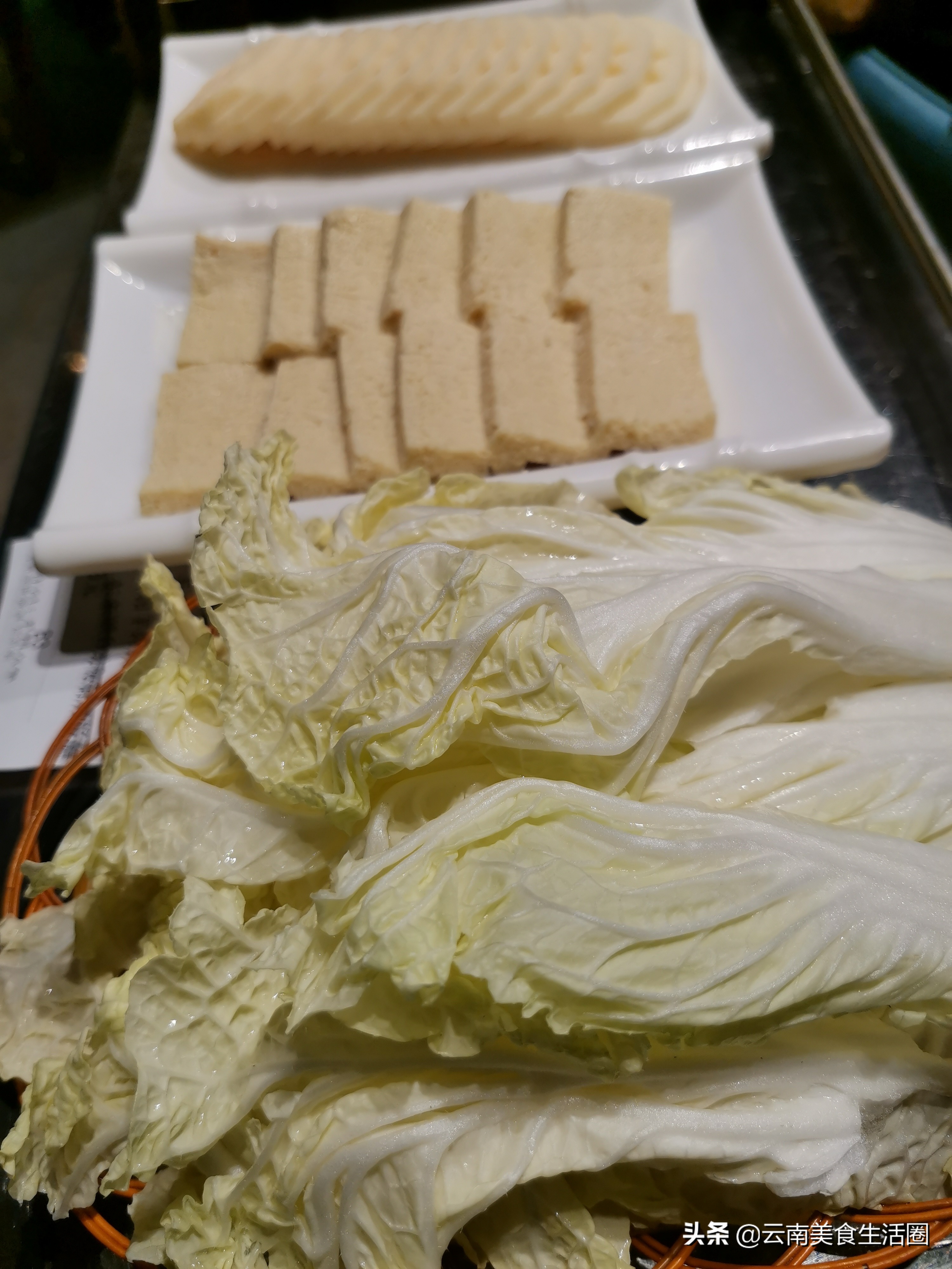 一般吃涮羊肉配的蔬菜都是老三样:白菜、冻豆腐和粉丝,不过这家店没有粉丝。其实这老三样也说明以前北方的冬天新鲜蔬菜匮乏,可以说就没有新鲜蔬菜。家家户户一冬天吃的都是自家秋天储存的大白菜、土豆、萝卜等耐储存的蔬菜,在北方以前是见不到绿色蔬菜的。云南的朋友可能无法想象吧?