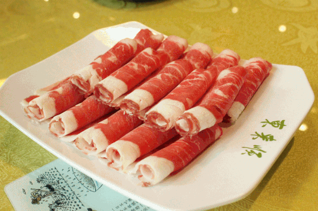 薄如纸片的羊肉整整齐齐的码在盘子里