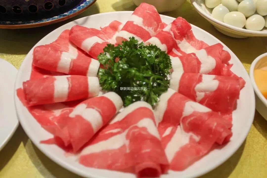 薄如纸片的羊肉整整齐齐的码在盘子里