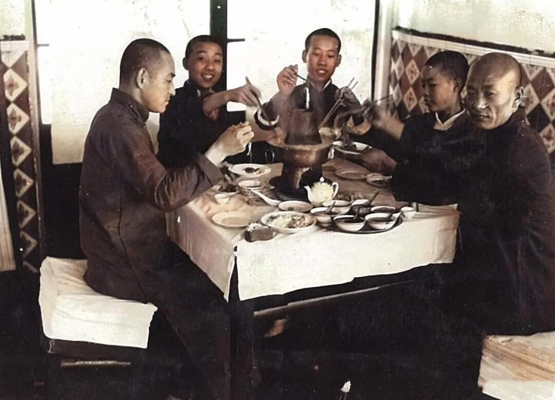 1939年的北京东来顺,一个带着小孙子来吃涮羊肉的白胡子老爷爷。